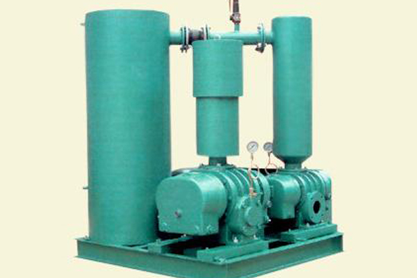 雙級高壓羅茨鼓風機是一種常用的鼓風機,它是一種由兩臺羅茨鼓風機串聯組成的裝置。每臺風機箱體內部均有兩個轉向相反的三葉型轉子,每個三葉型轉子用兩個軸承支撐,利用一對高精度的同步直齒輪,使兩個轉子的相對位置始終保持不變,轉子之間以及轉子與箱體之間保持一定的間隙,無接觸旋轉。轉子在側箱體同步齒輪的驅動下,借助兩轉子的“嚙合”,使進氣口與出氣口相互隔開,完成箱體和轉子間的密閉氣體從吸入側到吐出側的移送過程。在旋轉過程中無內壓縮地將工作腔內的氣體從進氣口推移到出氣口。轉子與轉子、轉子與箱體、轉子與墻板之間都有微小間隙,因而工作腔內沒有摩擦,無接觸磨損部分。